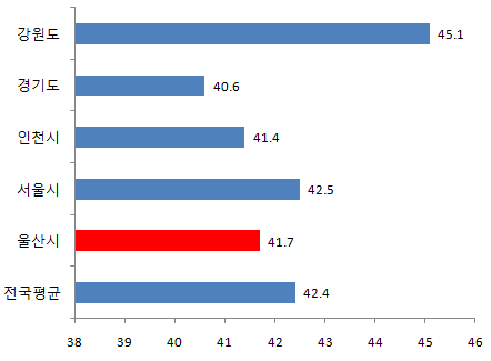 울산시에는 전국 인구의 2.19%가 거주합니다.