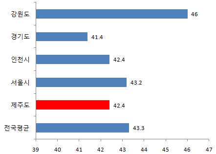 제주도에는 전국 인구의 1.3%가 거주합니다.