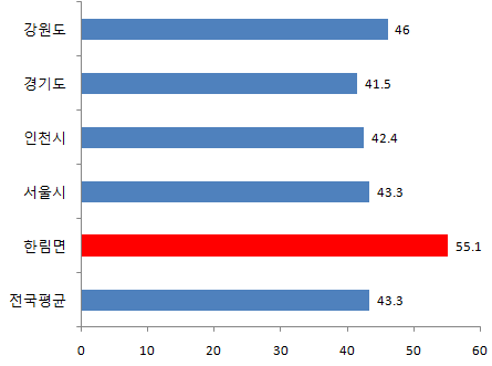 한림면 60대 인구비율 24.1%