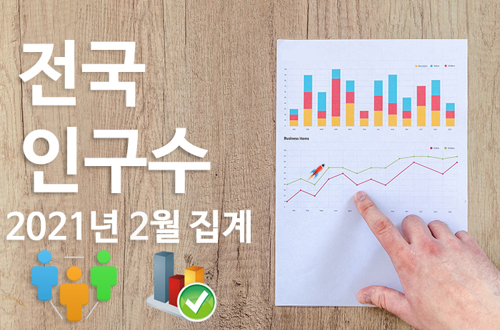 2021년 2월말에 집계한 대한민국 전국 인구 통계