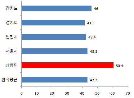 상동면 인구는 2009년 대비 2.23%감소했습니다.