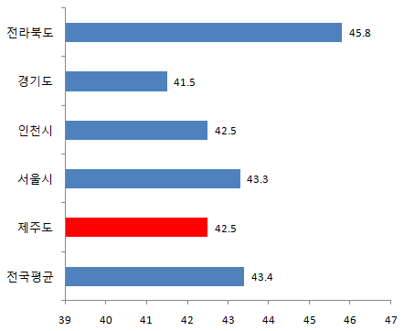제주도에는 전국 인구의 1.3%가 거주합니다.