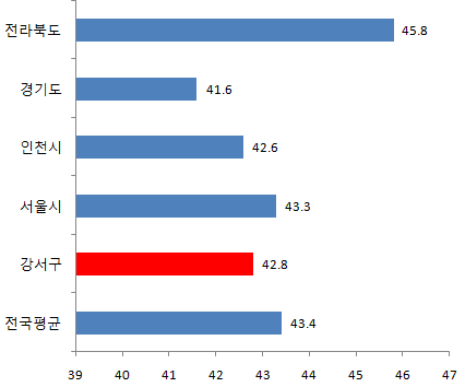 강서구 2021년 3인 가구수는 45,698세대, 17.01%