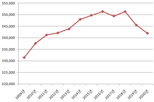 대구 동구 2021년 10인 이상 가구수는 20세대