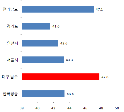 대구시 인구의 6.05%가 남구에 거주합니다.
