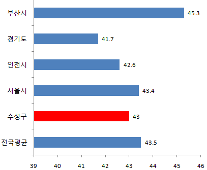 수성구 40대 인구비율 17.0%
