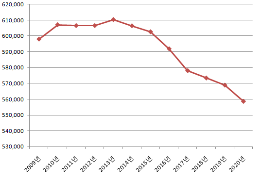 달서구 인구는 2009년 대비 7.92% 감소했습니다.
