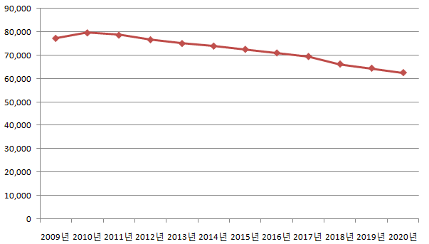 인천 동구 2021년 1인 가구수는 11,639세대로