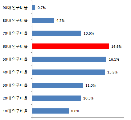 2021년 7월 인천 동구 연령대별 인구비 정리