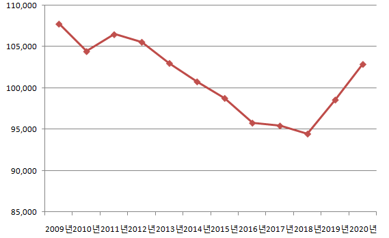 2020년 광주시 동구 인구 102,897명