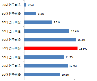 2021년 7월 광주 남구 연령대별 인구비 정리
