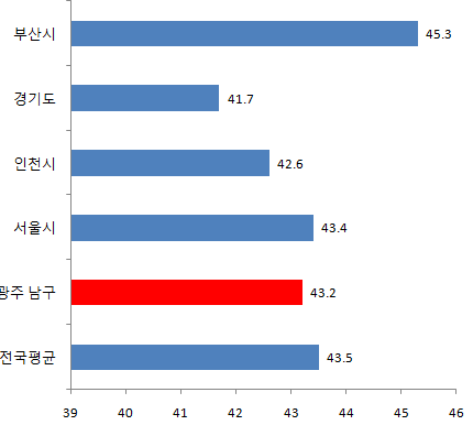 광주시 인구의 14.84%가 남구에 거주합니다.