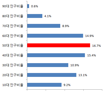 대전 중구 50대 인구비율 16.7%