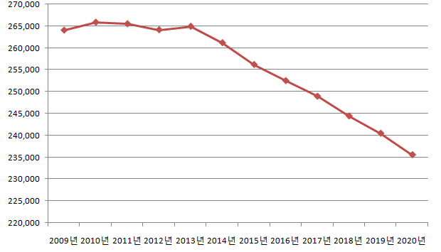 대전시 중구 인구는 2009년 대비 11.89% 감소했습니다.
