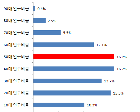 인구비,연령대별,생산인구,인구변화 등 서구의