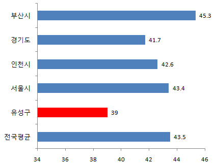 노인수,생산인구,출생사망,인구비 등 유성구의