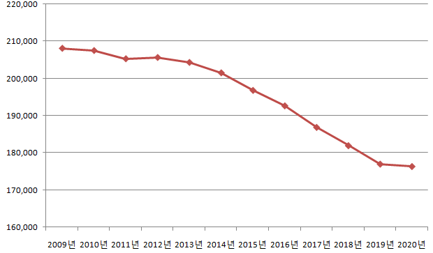 대덕구 2021년 10인 이상 가구수는 16세대