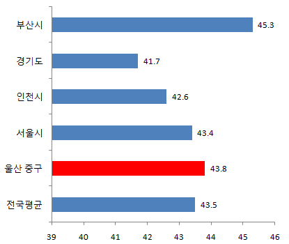 울산 중구 40대 인구비율 15.6%