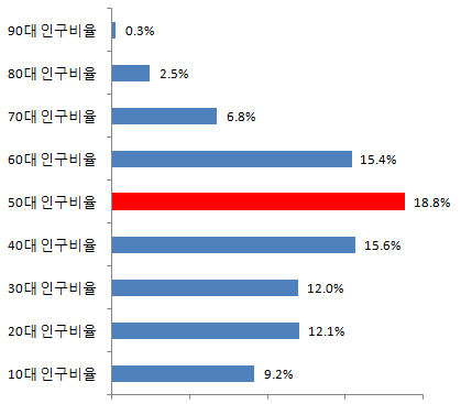 울산 중구 50대 인구비율 18.8%