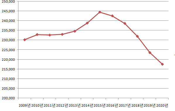 2020년 울산 중구 인구 217,595명