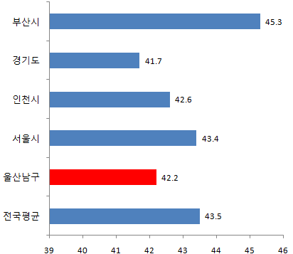 울산남구 2021년 5인 가구수는 4,283세대,3.09%