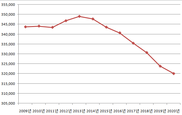 울산시 남구 인구는 2009년 대비 7.99% 감소했습니다.