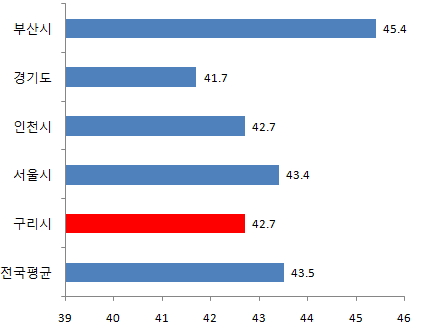 구리시 8월 평균연령은 42.7세입니다