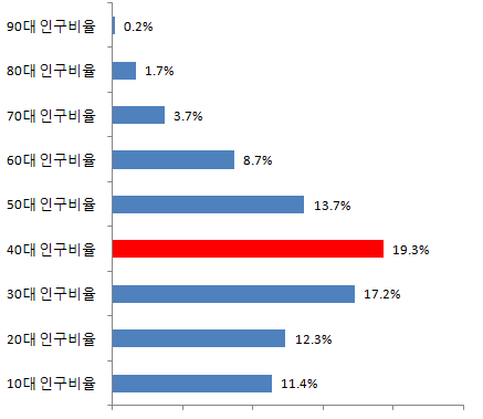 화성시 40대 인구비율 19.3%