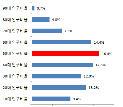 춘천시 50대 인구비율 16.4%
