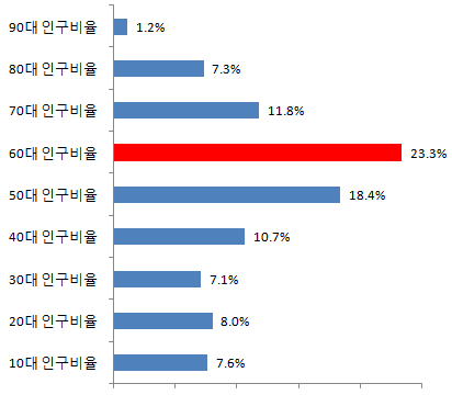 횡성군 60대 인구비율 23.3%