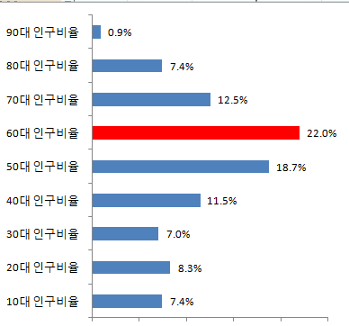 영월군 60대 인구비율 22.0%