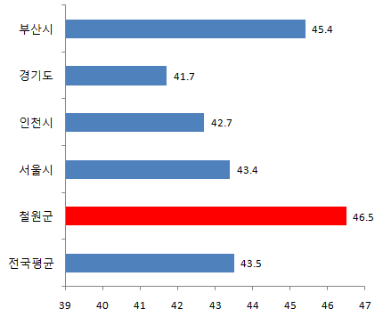 철원군 10대 인구비율 8.4%