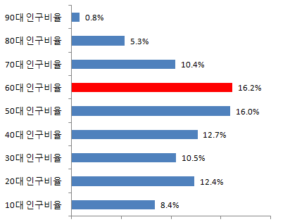 철원군 60대 인구비율 16.2%