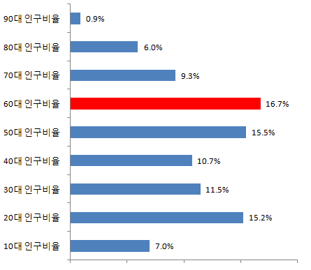 화천군 70대 인구비율 9.3%