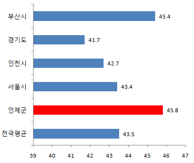 강원도 인구의 2.08%가 인제군에 거주합니다.