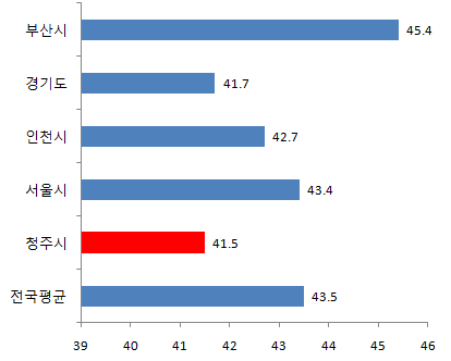 청주시 40대 인구비율 16.0%