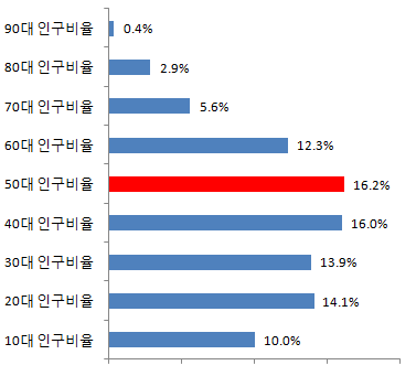 청주시 50대 인구비율 16.2%
