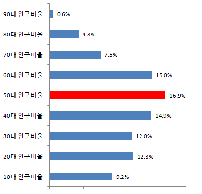 충청북도 50대 인구비율 16.9%