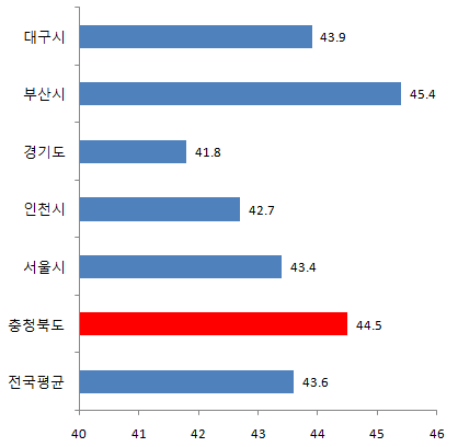충청북도 40대 인구비율 14.9%