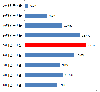 전라남도 50대 인구비율 17.0%