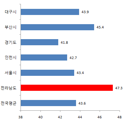 전라남도 40대 인구비율 13.8%