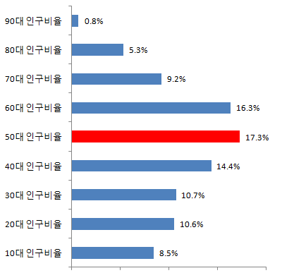 경상북도 50대 인구비율 17.3%