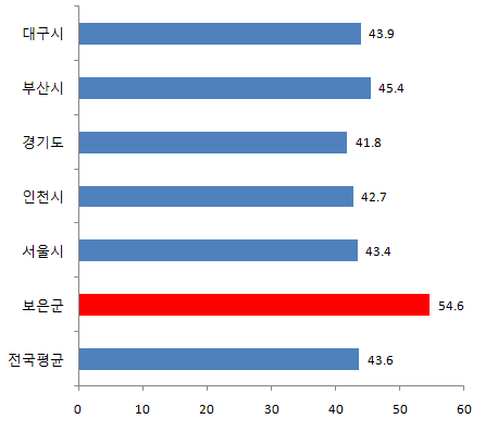 노인수,생산인구,출생사망,인구비 등 보은군의