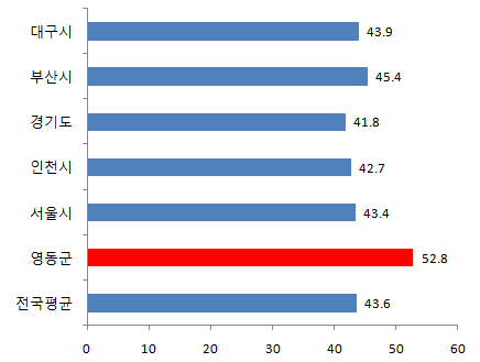 출생사망,생산인구,인구비 등 주요 영동군의 주요