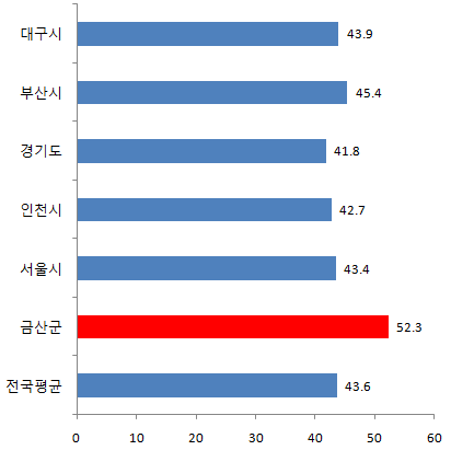 생산인구,출생사망,연령대별,인구비 등 금산군의