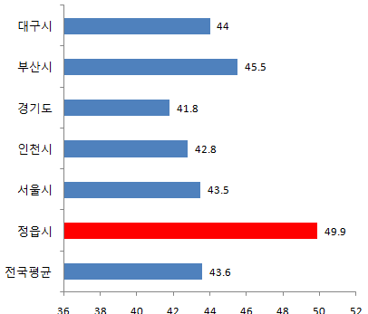정읍시 10월 평균연령은 49.9 세입니다
