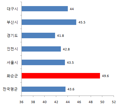 2021년 10월 말에 집계한 전남 화순군의 인구통계