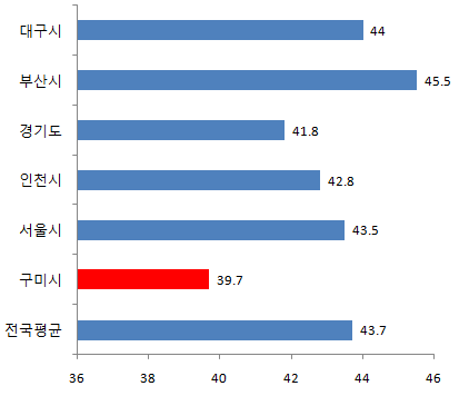 구미시 2021년 1인 가구수는 71,161세대,38.95%