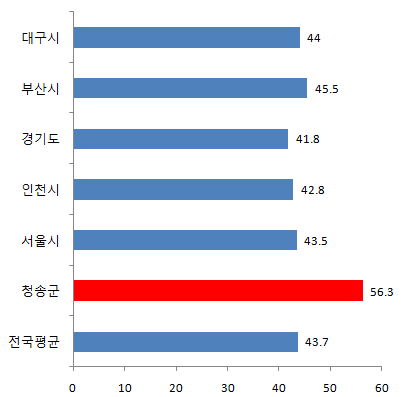 청송군 2021년 2인 가구수는 4,326세대,30.8%