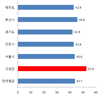 고성군 2021년 2인 가구수는 7,372세대,28.01%